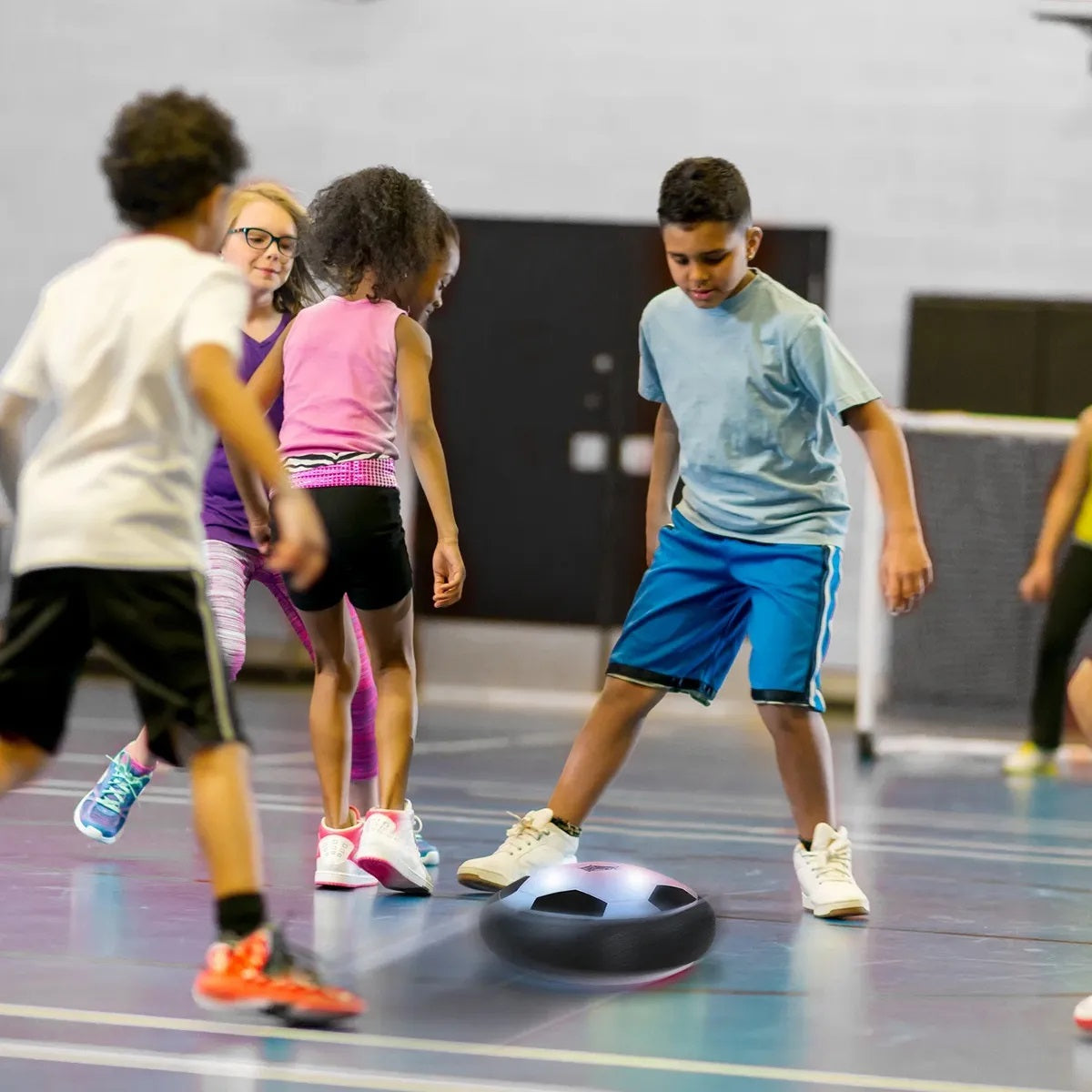 El balón flota y se desliza suavemente sobre el piso, permitiendo que los niños pateen, persigan y jueguen sin parar. Sus luces LED multicolores se encienden automáticamente, haciendo el juego aún más emocionante, incluso con poca luz. Funciona como fútbol, disco tipo hockey o juego libre, adaptándose a la imaginación de cada niño.
