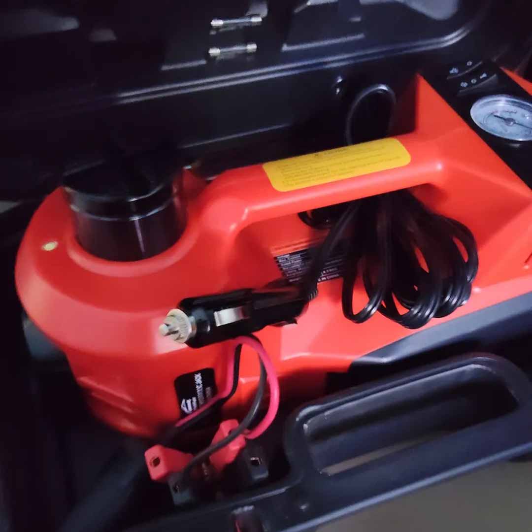 Quedarte varado por una llanta ponchada ya no tiene por qué ser una situación estresante. Este gato hidráulico eléctrico 12V con bomba de inflado integrada te permite levantar tu vehículo y resolver una emergencia vial de forma práctica, sin esfuerzo físico y sin depender de ayuda externa.