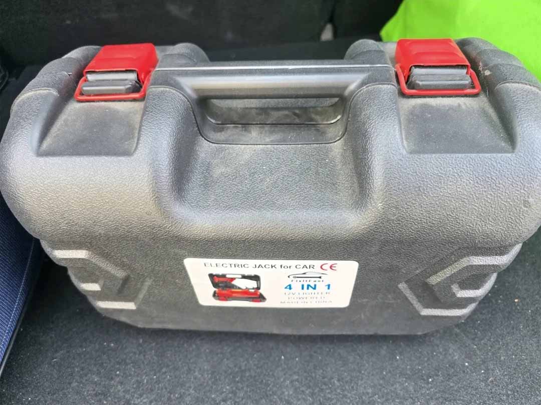 Su funcionamiento es simple: se conecta al encendedor del auto o directamente a la batería, levanta el vehículo de manera automática y además incluye bomba de aire para inflar llantas. Todo viene organizado en un estuche rígido, pensado para guardarse en la cajuela y usarse solo cuando realmente se necesita.