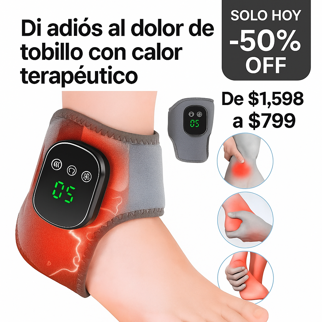 Alivia el dolor, inflamación y molestias en el tobillo con una terapia completa de calor profundo + vibración inteligente, diseñada para relajar tejidos, mejorar la circulación y reducir tensión desde la primera sesión. Ideal para quienes sufren dolor crónico, lesiones, esguinces o cansancio acumulado por largas horas de pie.