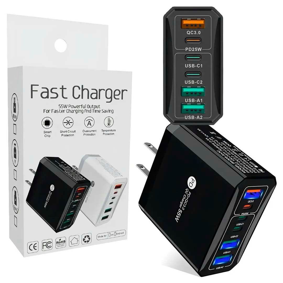 Cuenta con potencia total de 55W, tecnología Power Delivery (PD) y Quick Charge 3.0, además de protecciones contra sobrecarga, cortocircuito y sobrecalentamiento. Fabricado con material ignífugo, pensado para uso diario. Compatible con la mayoría de dispositivos USB y USB-C del mercado.