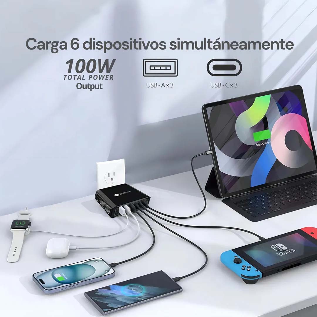 🌟 Carga hasta 6 dispositivos al mismo tiempo
